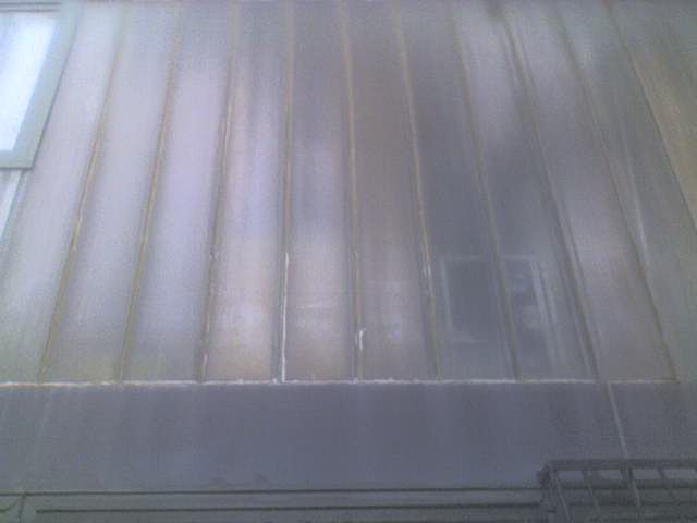 Budapest, XIII. kerület – Elhasználódott, szinte teljesen eltörött drótüvegből készült előtető átépítése új üveggel